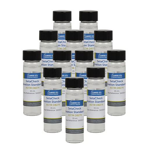 Produced in general accordance with the principles of ISO 17034 and ISO Guide 35, the SetaCheck Calibration Kit is a set of eleven hydrocarbon samples containing a known concentration of FAME with certified values. The calibration materials have been produced by accurately determining the mass of ingredients using a balance certified by an ISO 17025 accredited laboratory.